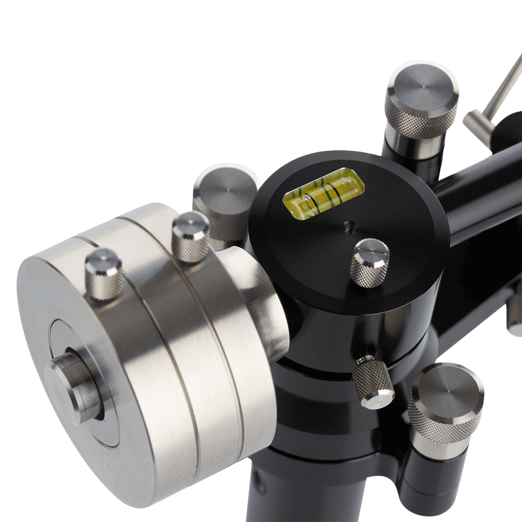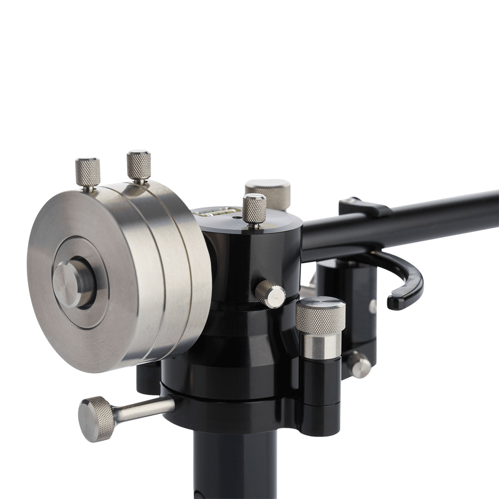 Zweiteiliges Gegengewicht aus Edelstahl für perfekte Gewichtsjustierung. Signifikant höhere Dynamik und Direktheit der Nadel durch optimierte Kraft-/ Masseverteilung im gesamten Tonarmsystem.