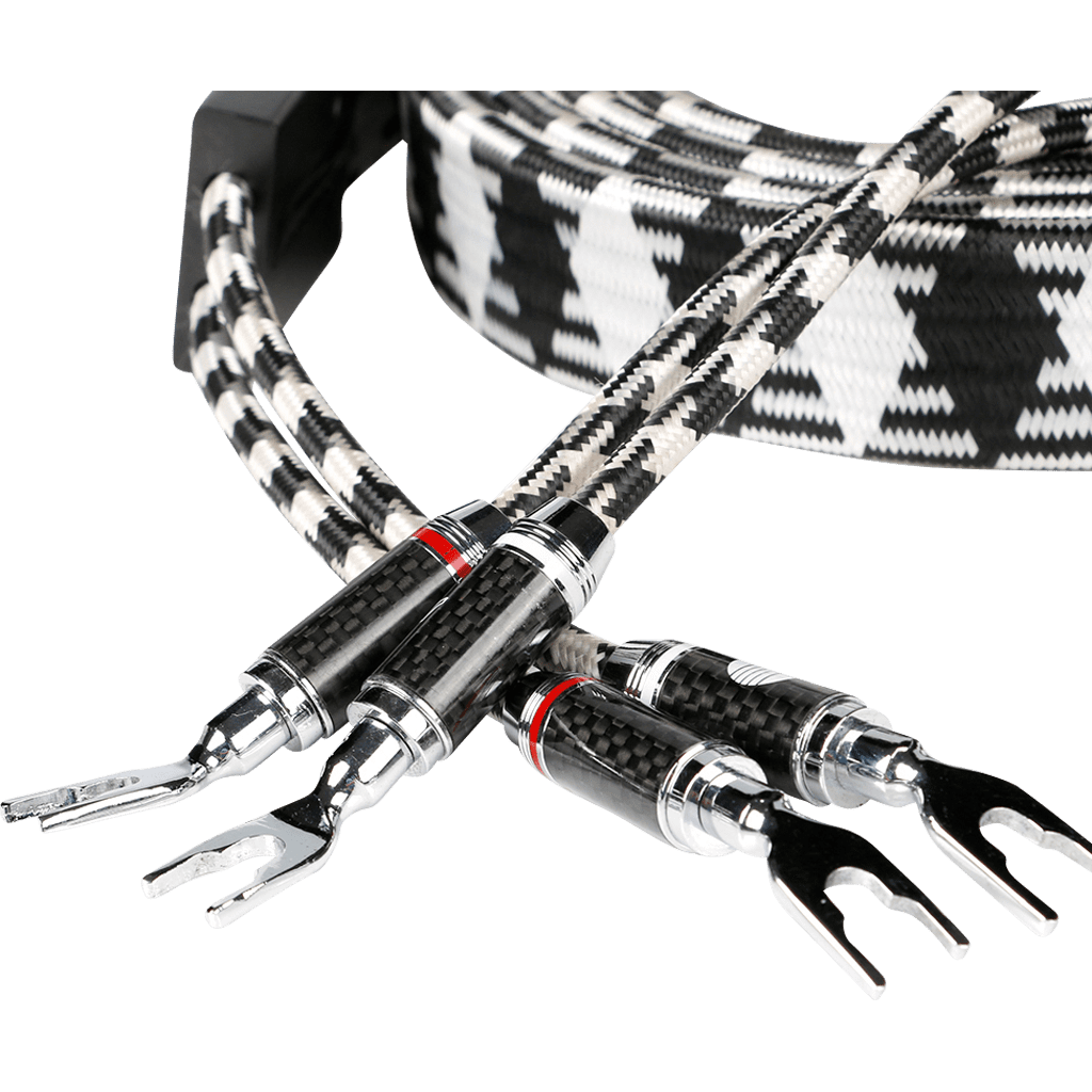 Das mit zwei Leitungsadern symmetrisch aufgebaute und als Flachkabel konzipierte High-End Lautsprecherkabel DSP-001/SC verfügt über eine geschirmte, mehrlitzige Innenleiterstruktur mit je 3,4042 mm² Querschnitt, hergestellt aus hochwertig versilbertem Kupfer mit OCC® (Ohno Continuous Casting) Technologie und einer Materialreinheit von 99,9999%. Die Kontaktflächen der austauschbaren Gabel oder Banana-Stecker (beide Versionen im Lieferumfang enthalten) sind für eine detailreiche Übertragung mit feinem Chrom beschichtet.