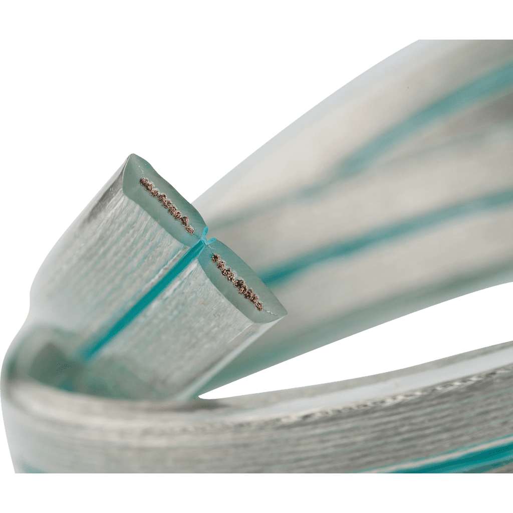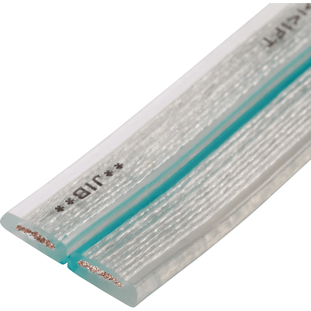 - Ummantelung: Die Ummantelung besteht aus transparentem und grünem PVC mit den Abmessungen 3,0 × 19,0 mm (Höhe x Breite). Diese Ummantelung schützt die Innenleiter vor mechanischen Beschädigungen und Umwelteinflüssen.