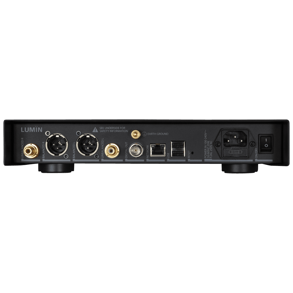 Natürlich enthält es alle üblichen LUMIN – Funktionen: Vollsymetrischen Aufbau mit XLR – Ausgängen, DSD – Upsampling, DoP – Unterstützung (DSD über PCM), Wolfson WM8741 – DAC -Wandler und die Software wird beständig optimiert und weiterentwickelt. Seit kurzem wird MQA und Roon von LUMIN unterstützt.