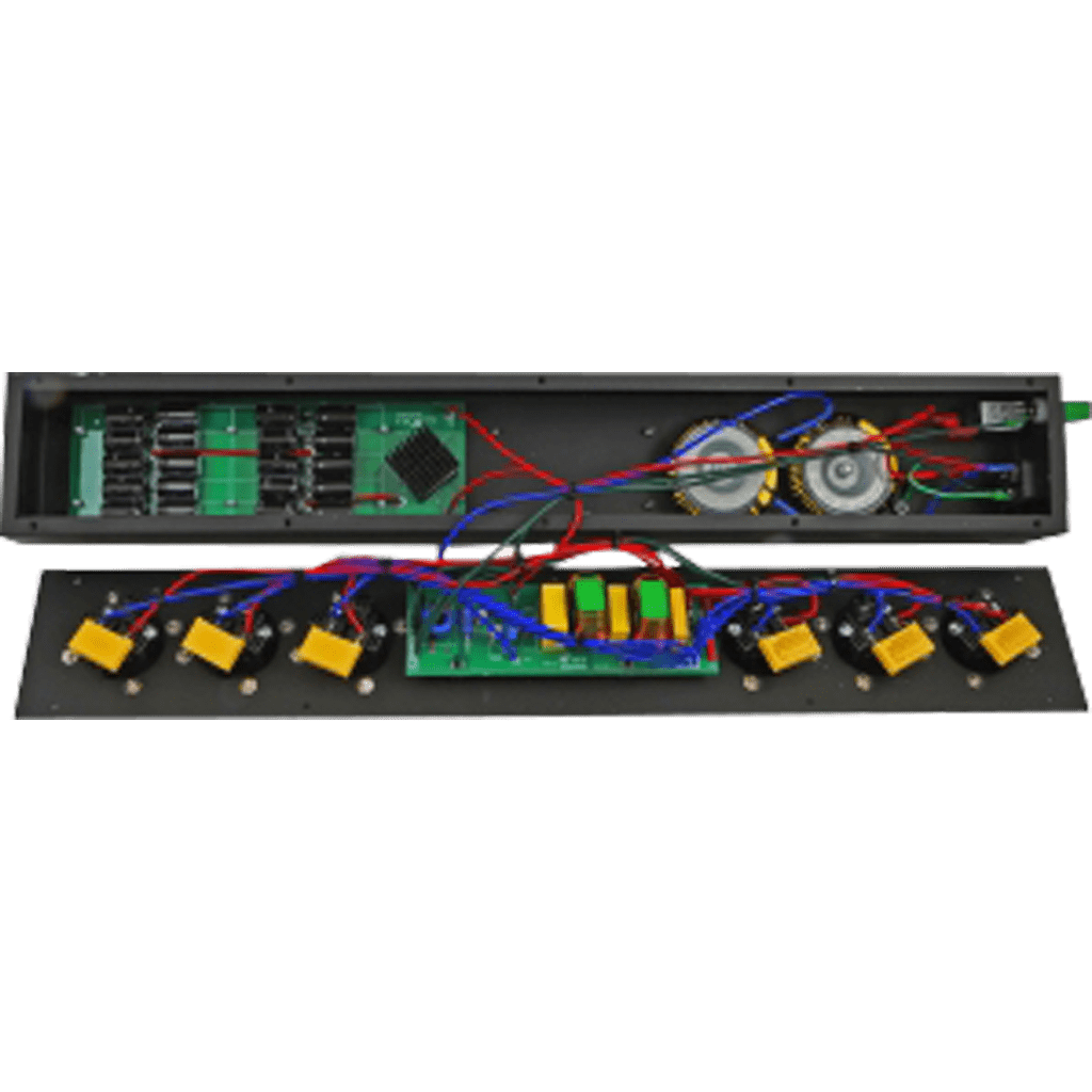Die Puritan Power Strips sind eine Weiterentwicklung der Power Bricks und verfügen über zusätzliche Komponenten für die hartnäckigeren Aspekte der Differentialmodus-Interferenz sowie über zwei zusätzliche Ausgangsbuchsen. All dies in einem extrem robusten, magnetisch abgeschirmten Gehäuse aus schwerem Stahl mit einer soliden Aluminiumoberfläche. Mit 6 x 15-Ampere-Ausgängen, 23 diskreten Filterelementen und verbesserten Differentialmodus-Behandlungen sowie einer optionalen DC-Offset-Korrektur sind die Power Strips eine großartige Lösung, wenn Sie sich einen Studio Master nicht leisten können oder die schlanke Ergonomie der Strip-Modelle bevorzugen.
