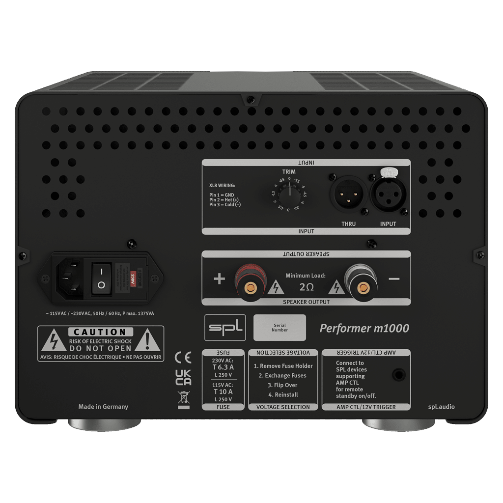 Mit einer Verstärkerleistung von 750 W (4 Ω) [1000 W (2 Ω); 420 W (8 Ω)] kontrolliert diese rein analoge Endstufe jeden Lautsprecher spielerisch. Dank VOLTAiR-Technologie ist die Performance des m1000 detailreich, lebendig, ehrlich und von musikalisch überragendem Klang.