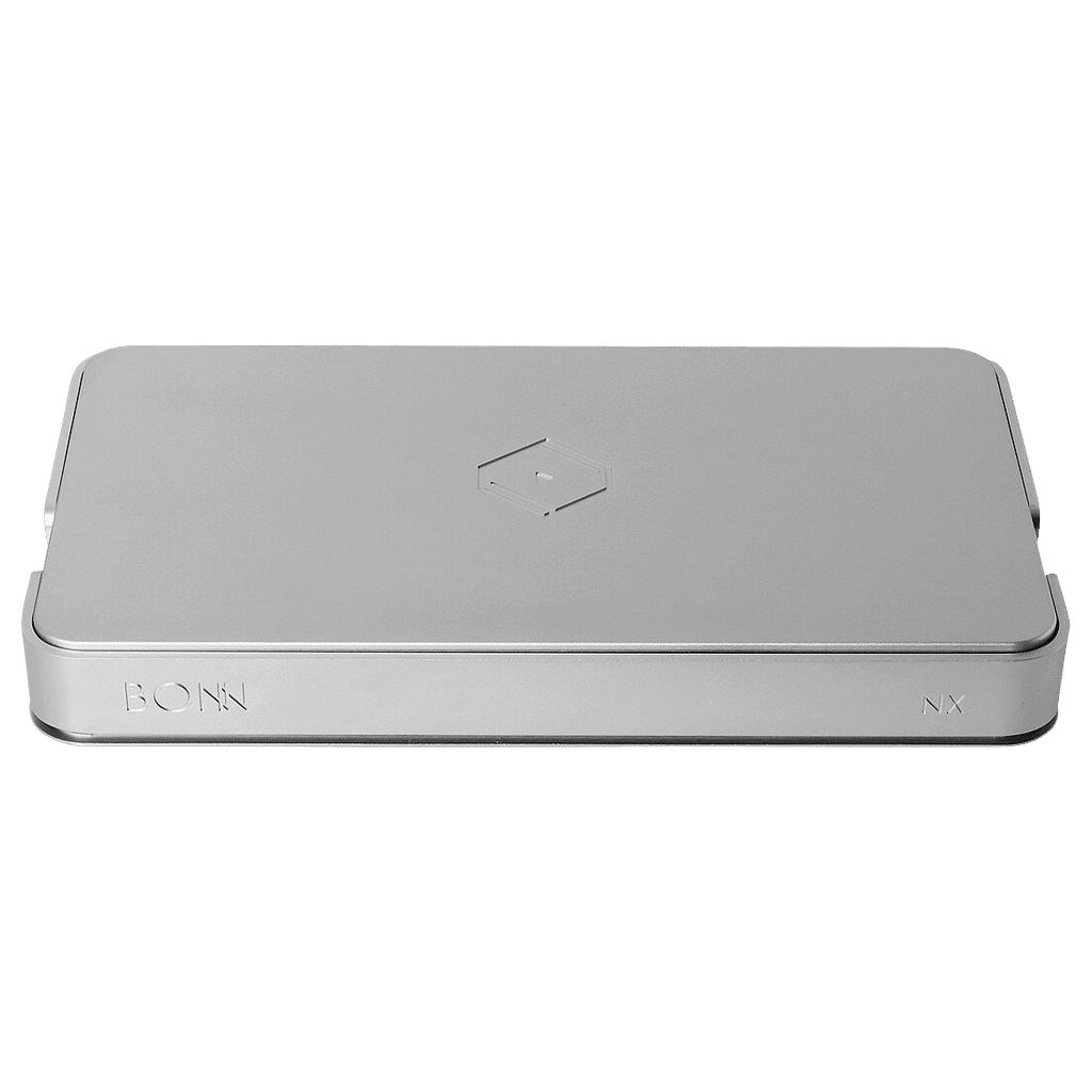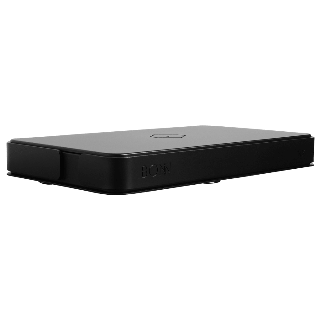 - Das brandneue Gehäusedesign besteht aus zwei Schichten unterschiedlicher, sorgfältig ausgewählter Materialien: Die innere Schicht besteht aus verzinktem Stahl, die äußere aus einer stabilen, hochwertigen Aluminiumlegierung. Diese extravagante Konstruktion maximiert die Abschirmung und Kontrolle von Wirbelströmen und dämpft gleichzeitig Vibrationen und Geräusche. Das schlanke, moderne Design verleiht dem Bonn NX einen hohen ästhetischen Wert und macht ihn zu einem funktionalen Kunstwerk der Audiotechnik.