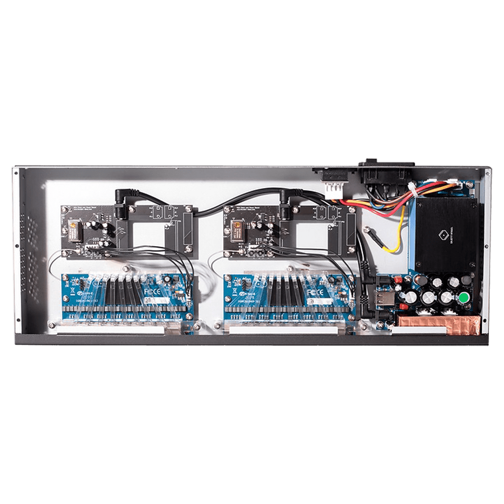 Der Hersteller legt Wert auf die Isolierung der beiden Module, nicht nur durch ihre räumliche Trennung, sondern auch durch die Spannungsversorgung. Um eine stabile, geräuscharme und reaktionsschnelle Stromquelle zu haben, ist der N16 LPS mit dem Silent Angel Forester Linear Power Modul ausgestattet. Durch die Verwendung einer vollständig symmetrischen Schaltung (sowohl im Transformator als auch in der Schaltung) bietet dieses lineare Forester-Leistungsmodul zwei isolierte Stromquellen, die der Hochfrequenzbelastung des Schaltkreises gerecht werden und zwei getrennte 8-Port-Schaltmodule speisen.