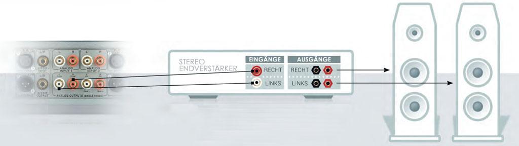 Diese Abbildung zeigt Ihnen die Ausgänge, die standardmäßig für ein Stereowiedergabesystem verwendet werden sollten. Bitte beachten Sie, dass diese Ausgänge immer parallel angesteuert werden.
